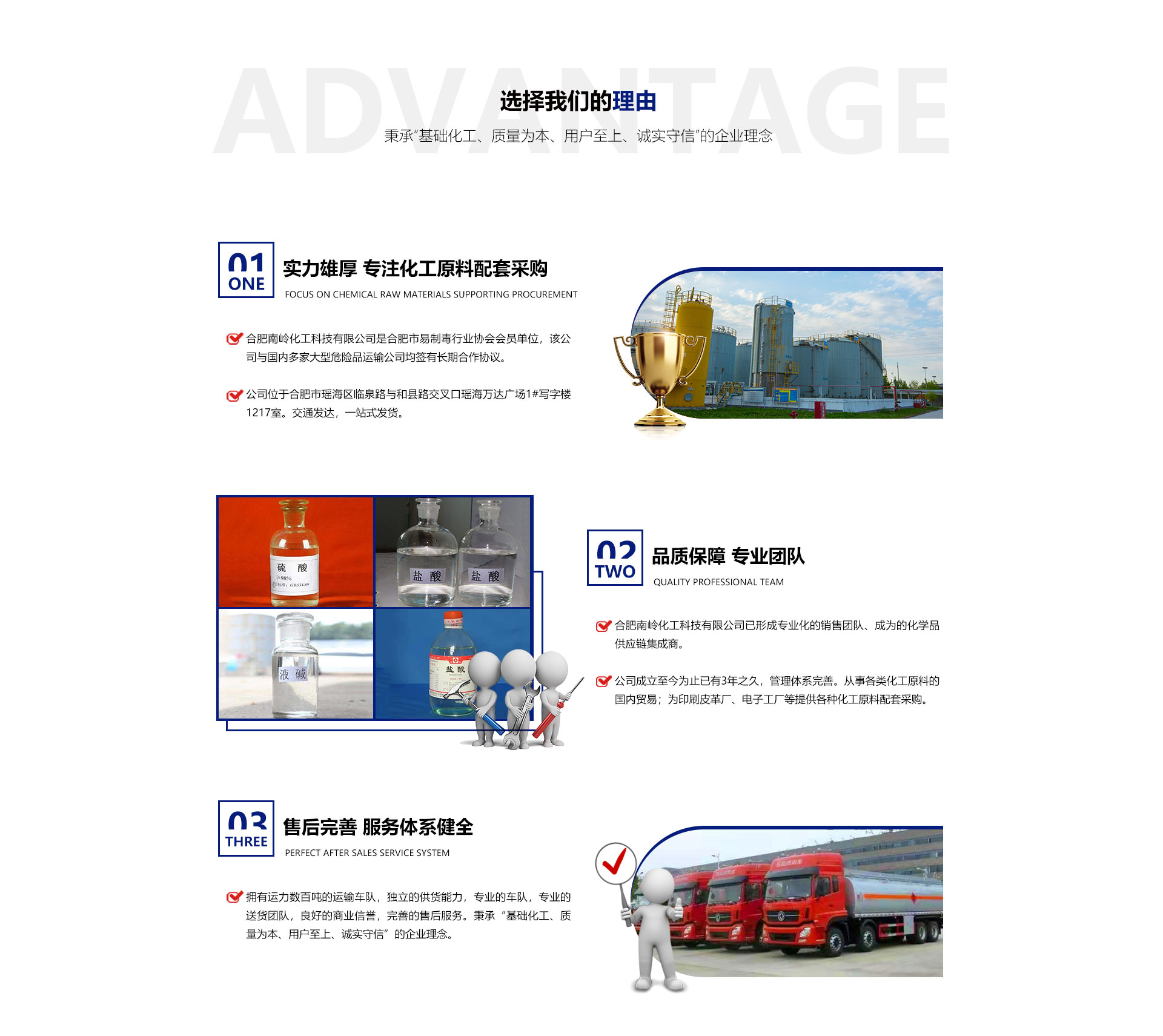 關(guān)于我們合肥南嶺化工科技有限公司是合肥市易制毒行業(yè)協(xié)會會員單位,該公司與國內(nèi)多家大型危險(xiǎn)品運(yùn)輸公司均簽有長期合作協(xié)議,擁有運(yùn)力數(shù)百噸的運(yùn)輸車隊(duì),獨(dú)立的供貨能力,良好的車隊(duì)運(yùn)輸,有效的送貨團(tuán)隊(duì),良好的商業(yè)信譽(yù),完善的售后服務(wù)。秉承“基礎(chǔ)化工、質(zhì)量為本、用戶至上、誠實(shí)守信”的企業(yè)理念。從事各類化工原料的國內(nèi)貿(mào)易;為各個化工廠、印刷皮革廠、電子工廠等提供各種化工原料配套采購。目前,公司正朝著以貿(mào)易為基礎(chǔ)、以實(shí)業(yè)為依托,采購、銷售,內(nèi)外貿(mào)一體化,上下游一體化,具有綜合增值能力和復(fù)合競爭能力化工原料供應(yīng)商。本公司主要經(jīng)營的產(chǎn)品有:鹽酸、硫酸、液堿、片堿等。合肥南嶺化工科技有限公司已形成服務(wù),售后一體化的團(tuán)隊(duì)、成為的化學(xué)品供應(yīng)鏈集成商。為客戶提供良好的服務(wù)及產(chǎn)品,本公司經(jīng)銷的各種產(chǎn)品不僅在安徽地區(qū)深受用戶好評,而且具有很高的市場占有率,產(chǎn)品行銷各個地區(qū)。
